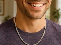 This rhodium-plated round franco chain comes in sterling silver and has a width of 4.6 millimeters.